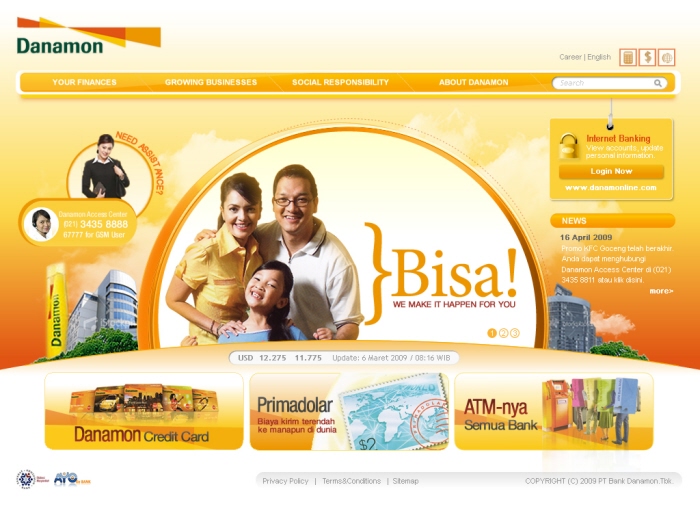 Kredit enterprise banking yang terdiri dari segmen perbankan korporasi, perbankan komersial, dan institusi keuangan. Bank yang memiliki warna inti oranye ini mempunyai visi yaitu “kita peduli dan membantu jutaan orang mencapai kesejahteraan.selain itu, danamon terus berupaya meningkatkan pertumbuhan ekonomi di semua segmen usahanya melalui jaringan distribusi danamon di indonesia. Kami akan segera membuka halaman ini setelah mendapat konfirmasi atau validasi anda.