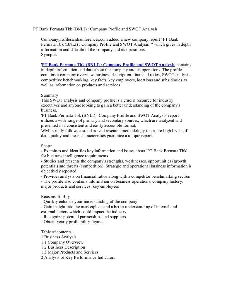Pt bank permata tbk (bnli) company profile and swot analysis
