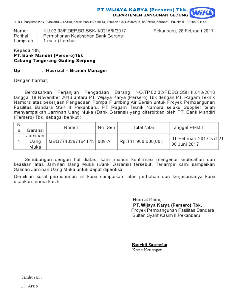 Contoh Surat Permohonan Bank Garansi Mandiri Bagikan Contoh
